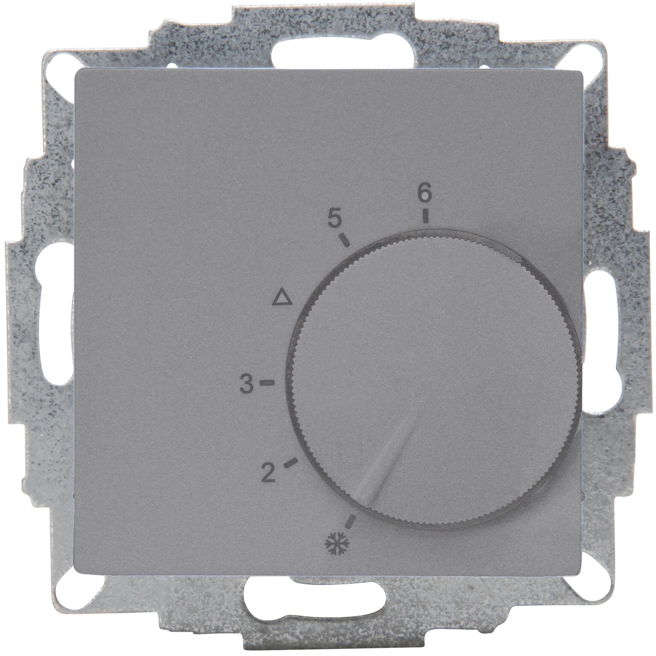 HK07 – Raumtemperaturregler „Öffner“, Temperaturbereich +5°C bis +30°C, Abschalten des Heizgeräts bei Überschreiten der Solltemperatur, 10(4)AX, Nennspannung 230V~, 2300W, kombinierbar mit Schalterprogramm HK07, Farbe: stahlfarben