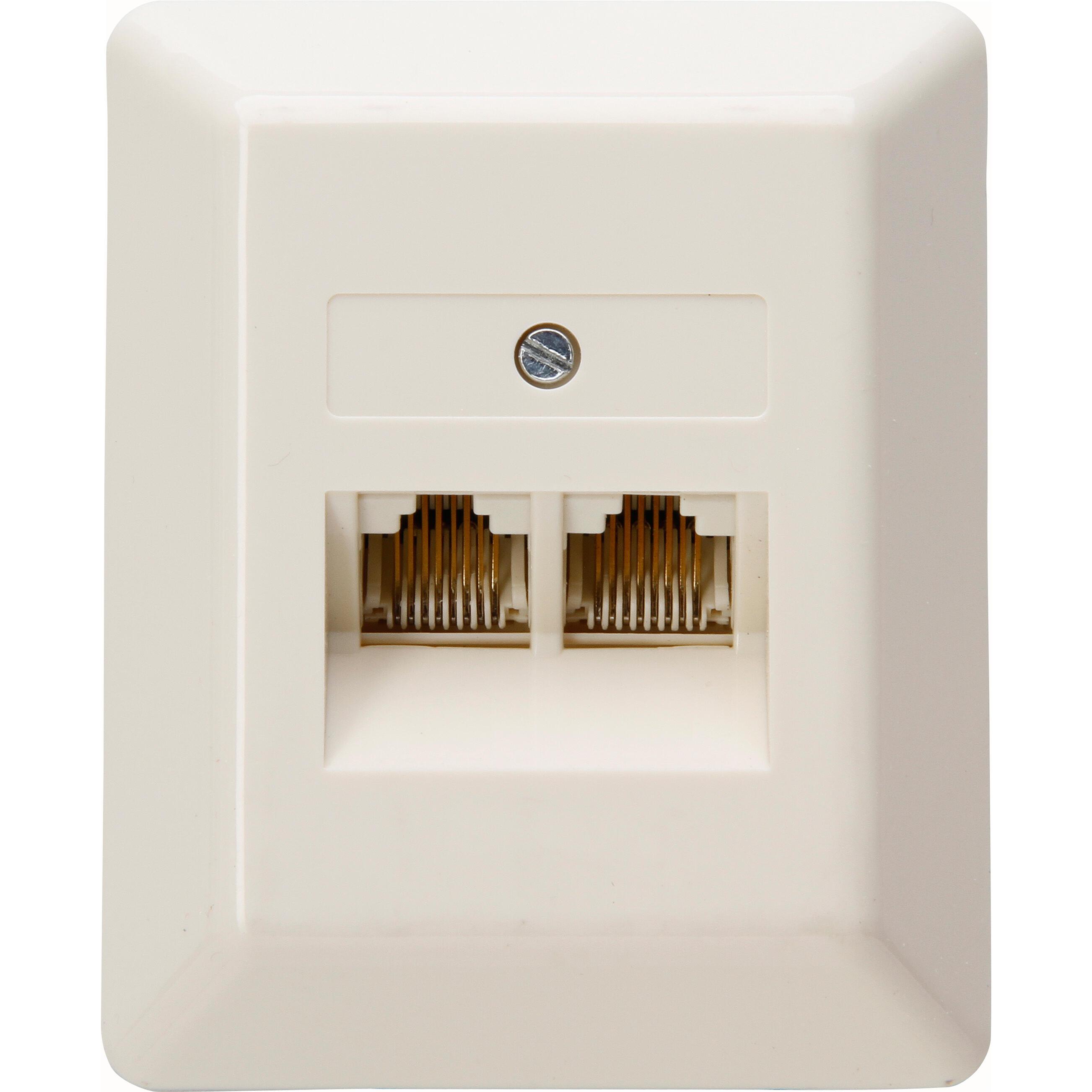 Telefonanschlussdose TAE, Aufputz, 1 Amtsleitung und 2 Zusatzgeräte, 3×6-polig, NFN-Codierung, Farbe: weiß