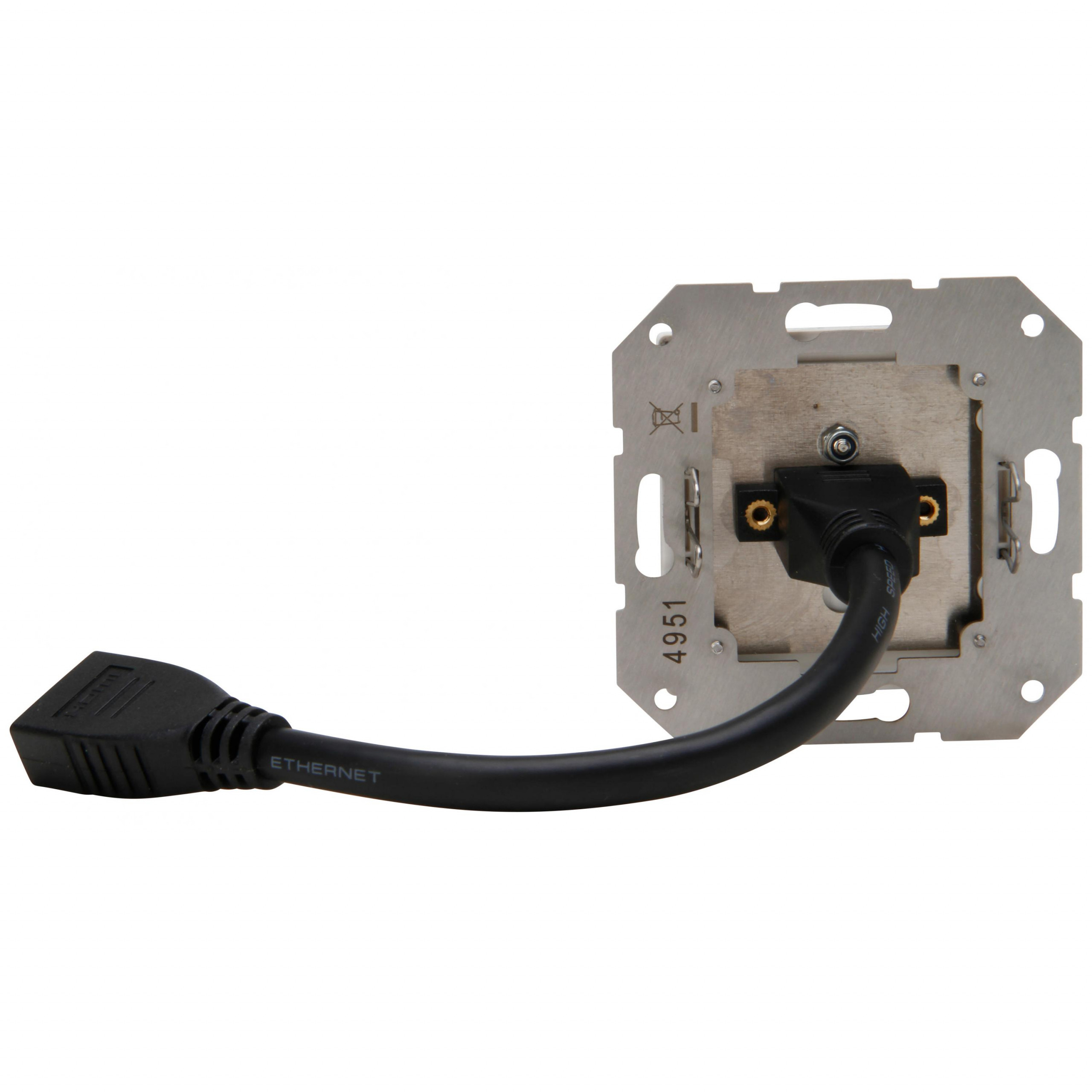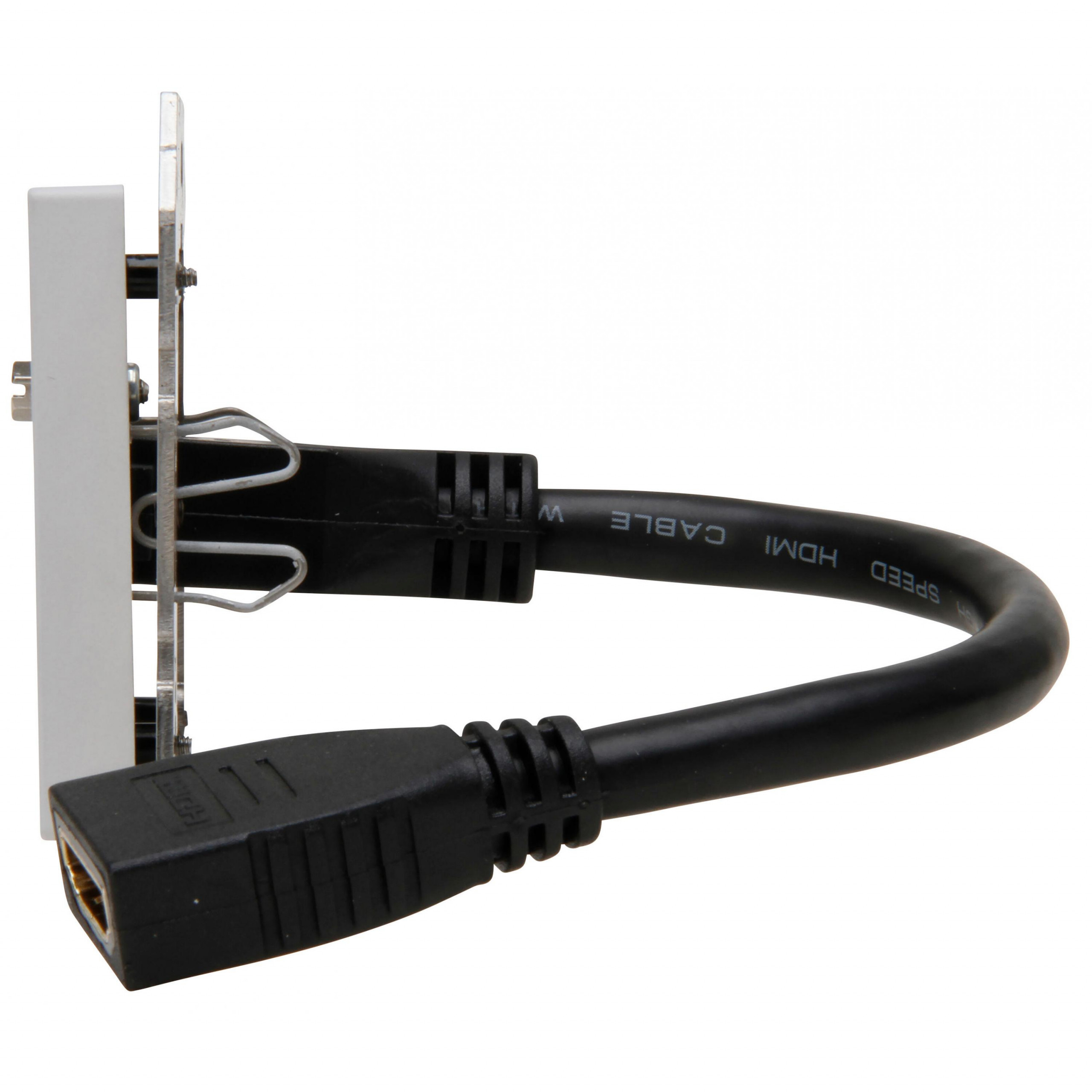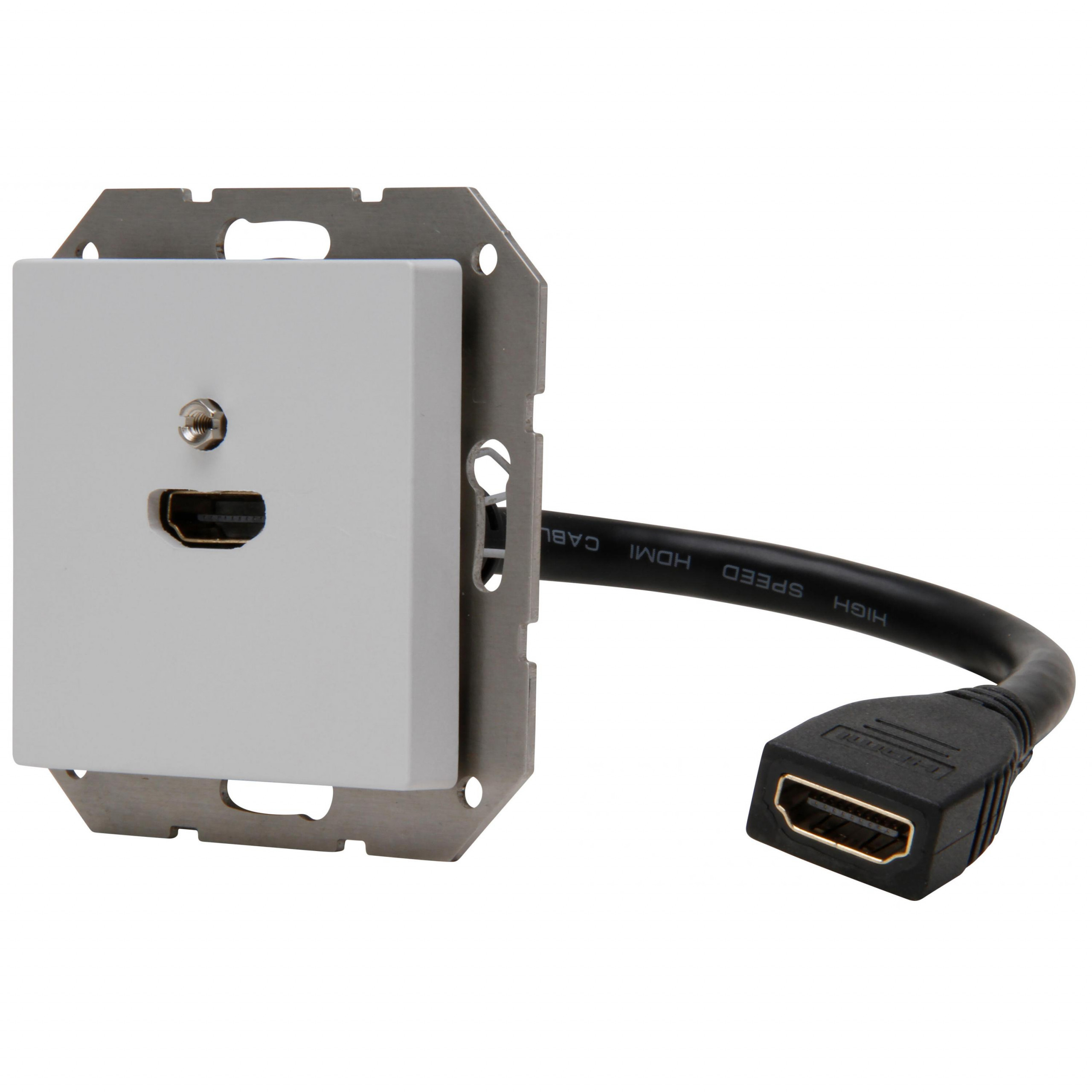 HDMI-Anschlussdose mit Abdeckung und mit Kabelpeitsche 0,2m, Farbe: grau matt