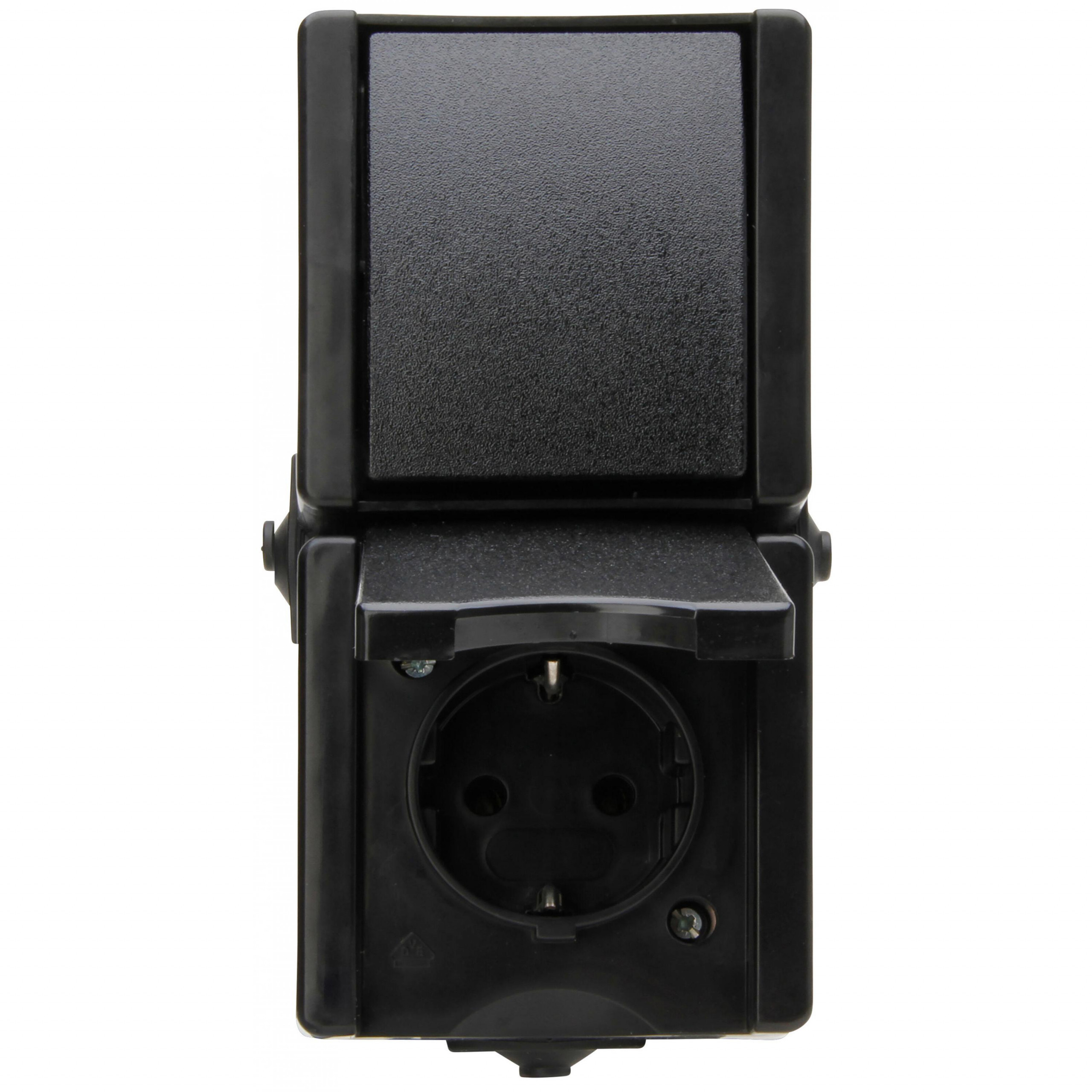 proAQA – Aufputz-Feuchtraum Taster, beleuchtet, Bemessungsspannung 250V~, Schaltvermögen 10AX, Schutzart IP44, Farbe: schwarz