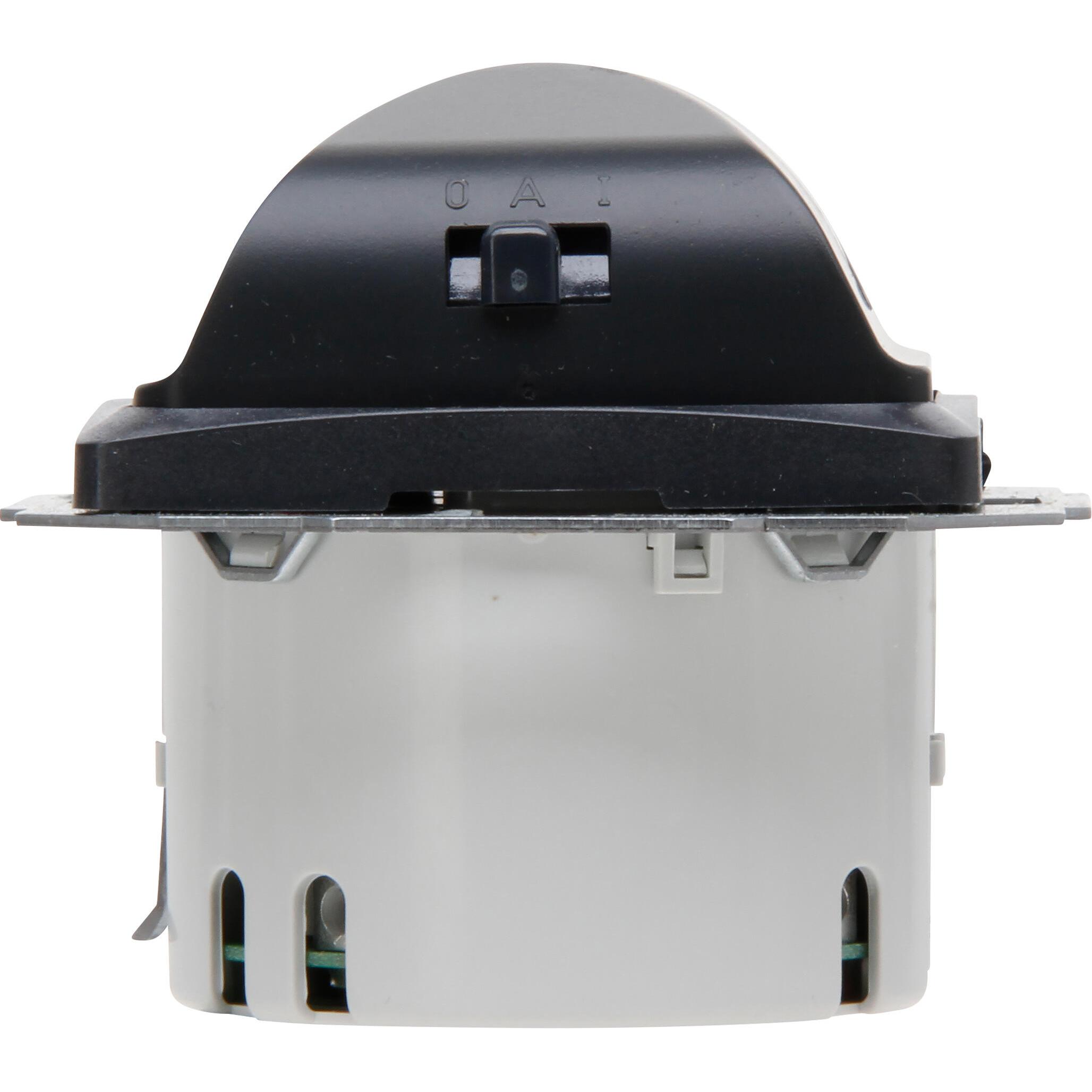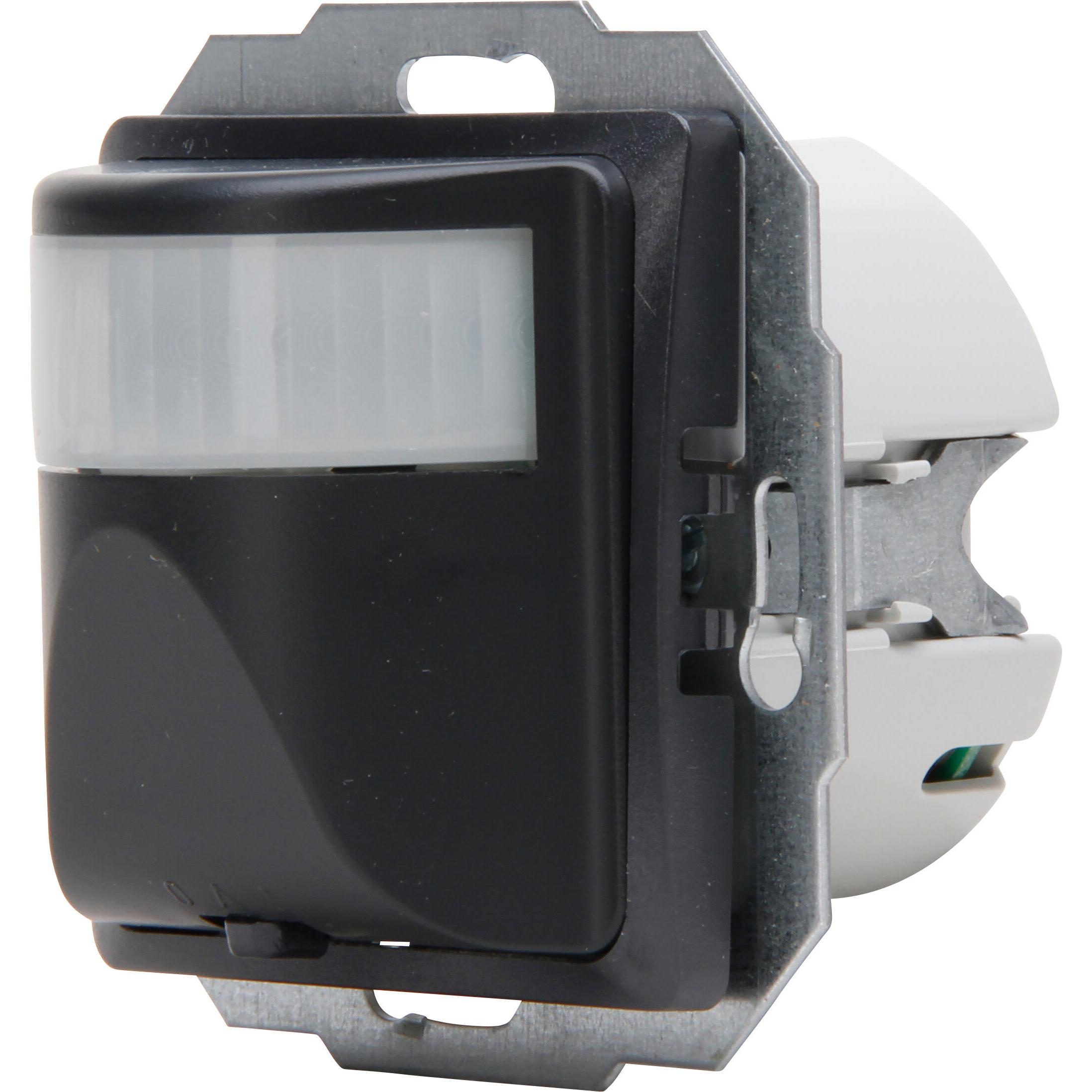 HK07 – INFRAcontrol Bewegungsmelder R180° 50x50mm, 3-Draht-Gerät, Erfassung: Infrarot, Erfassungswinkel 180°, Montage: Unterputz, Erfassungsreichweite bis 10m, Schutzart: IP20, 230VAC, 50Hz, Glühlampen: max. 1000W, Hochvolt-Halogenlampen: max. 1000W, Leuchtstofflampen: max. 1000VA (reihenkompensiert), Niedervolt-Halogenlampen: max. 1000VA, LED-Lampen: max. 300W/VA, Nachlaufzeit: 4-240 Sekunden, Ansprechhelligkeit stufenlos einstellbar, mit Umschalter für Dauer-AUS, Automatik, Dauer-EIN, passend für Schalterprogramm HK07 inkl. Zwischenrahmen, Farbe: anthrazit