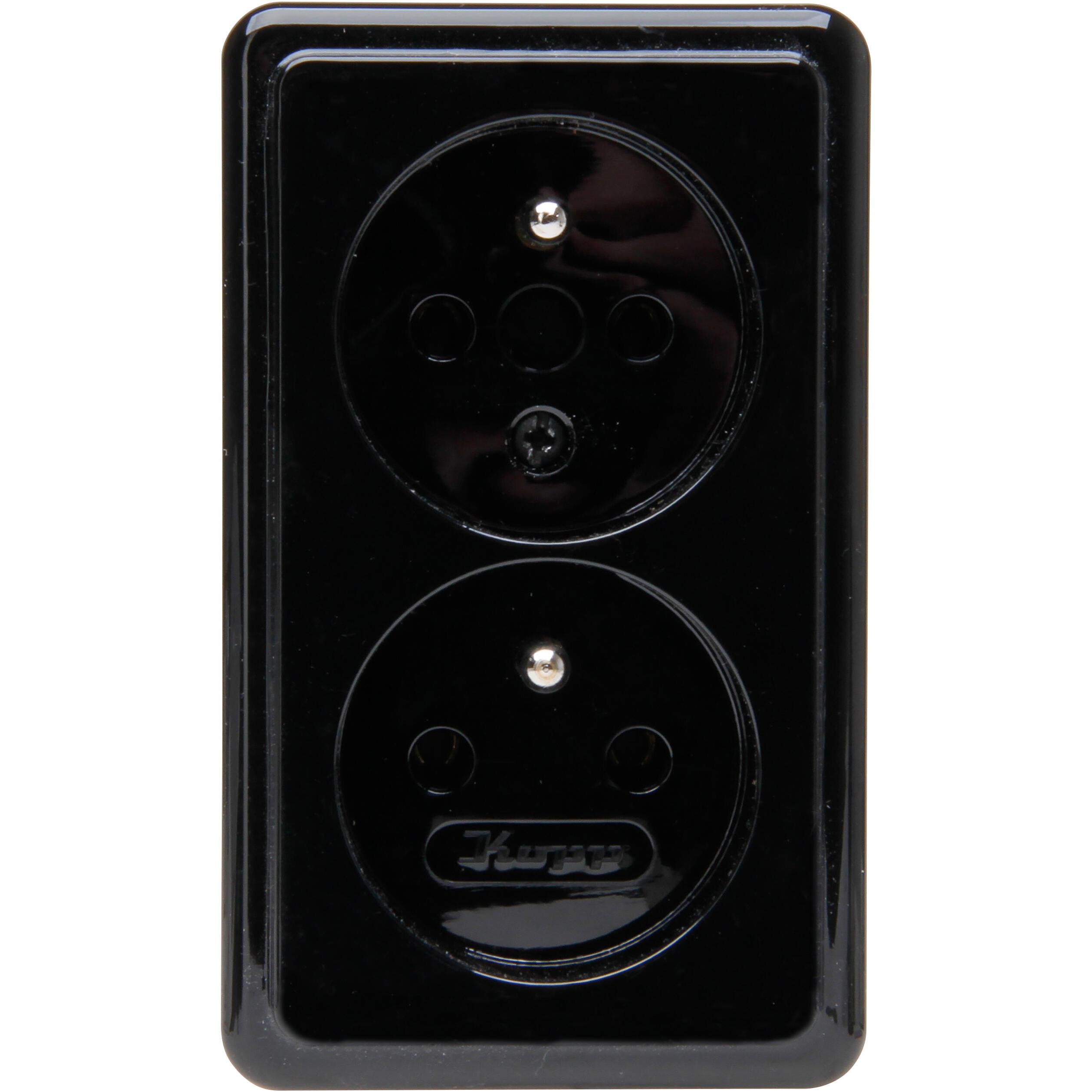 STANDARD – Surface-mounted center protective contact socket and A/W switch combination with increased touch protection and base plate, colour: black