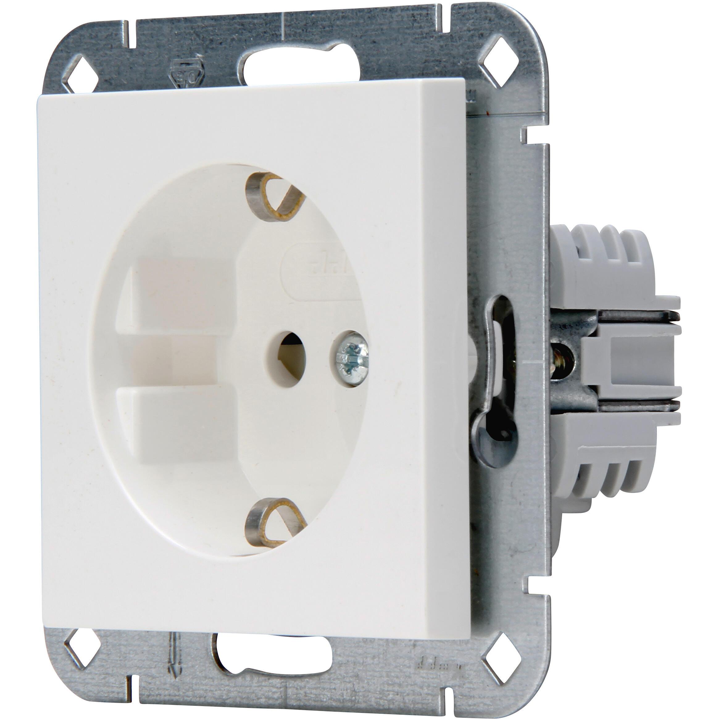 HK07- earthed contact socket, without shutter, without claws, rated current 16A, rated voltage 250V~, protection class IP20, bulk packaging: 80 pieces per box (orders only possible in full packaging units), colour: pure white