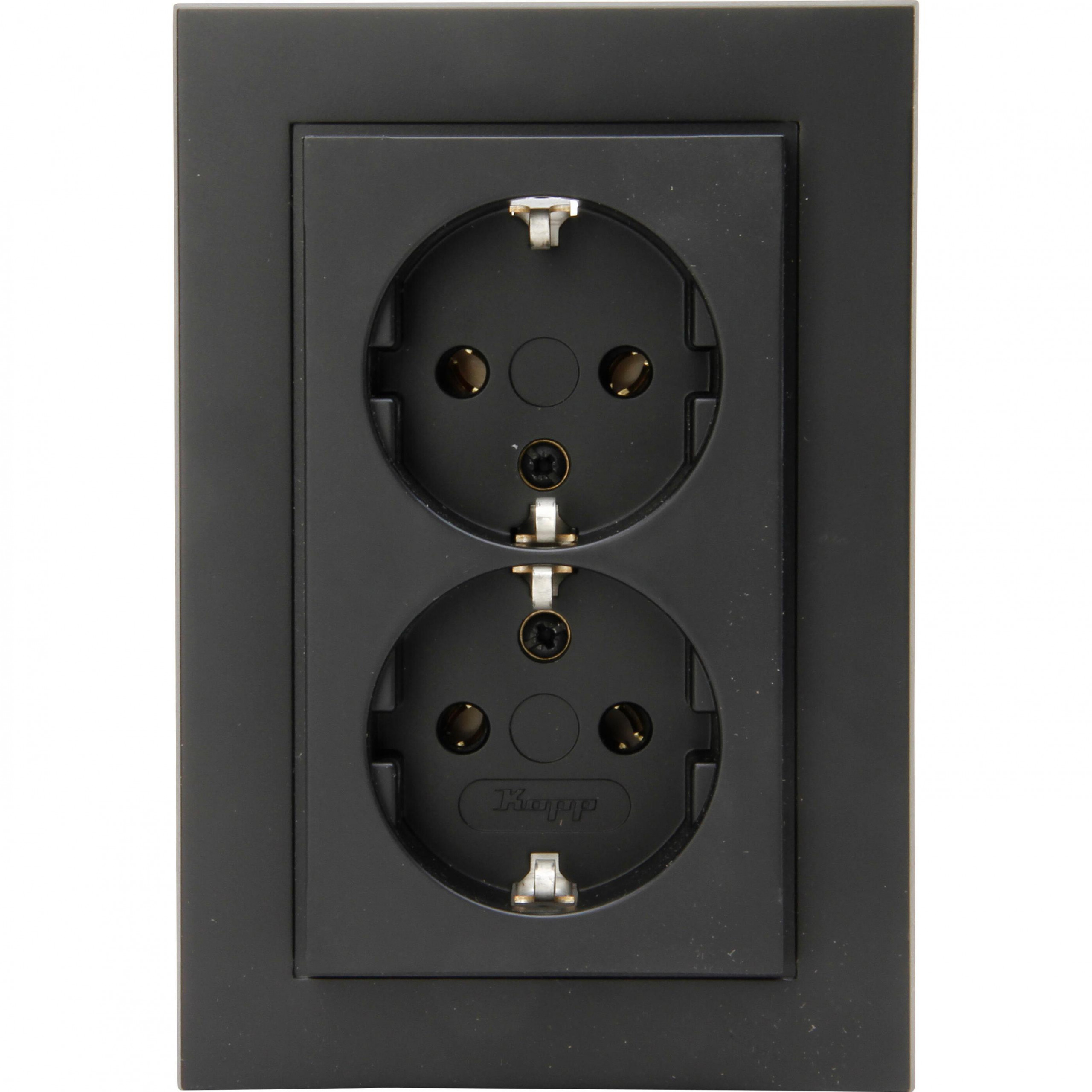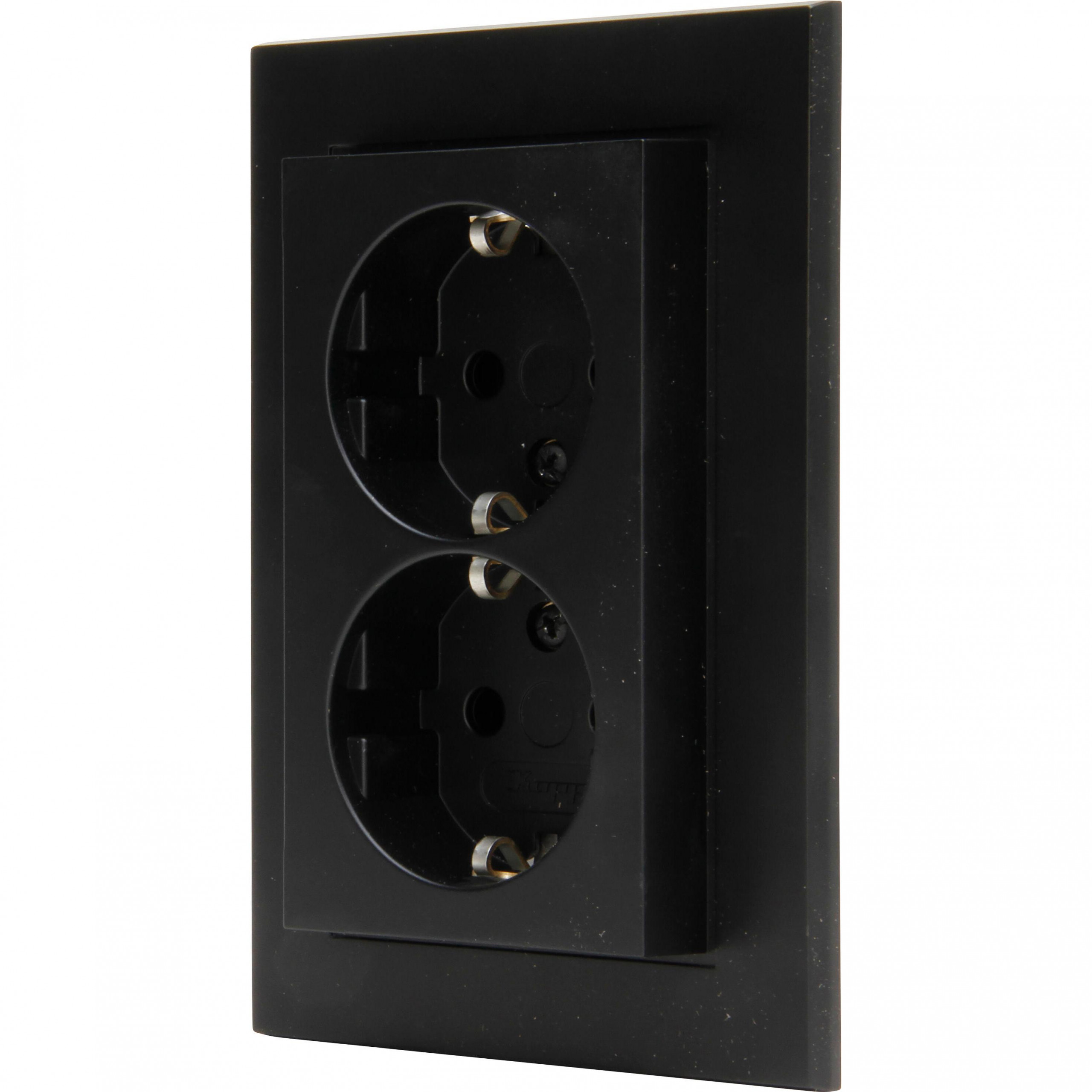 HK07 – double earthed socket outlet, without shutter, for the installation in a single switch box Ø60mm, 16A, 250V, colour: black matt