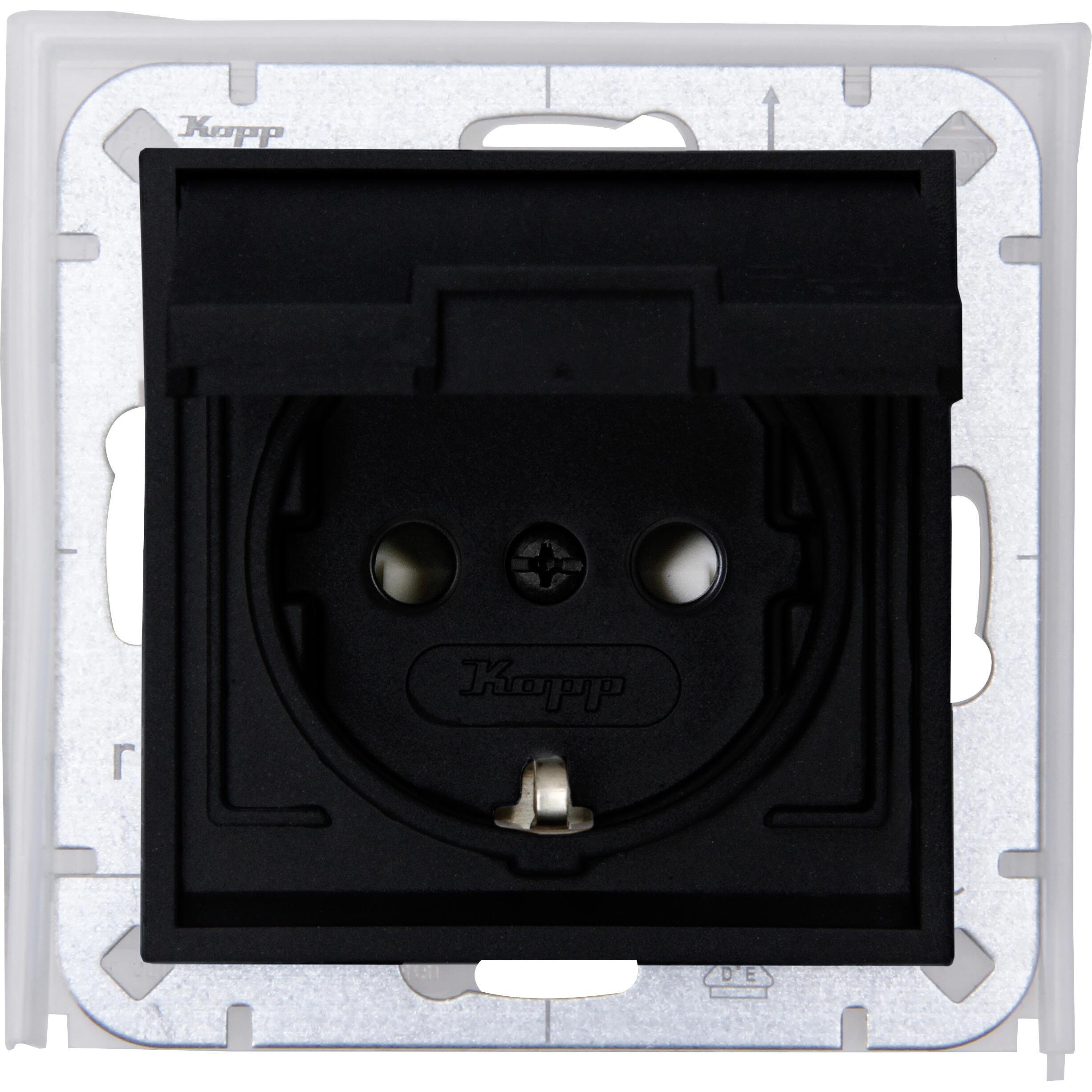 HK07 IP44 – wandcontactdoos 1-voudig geaard met shutter, IP44, mat-zwart